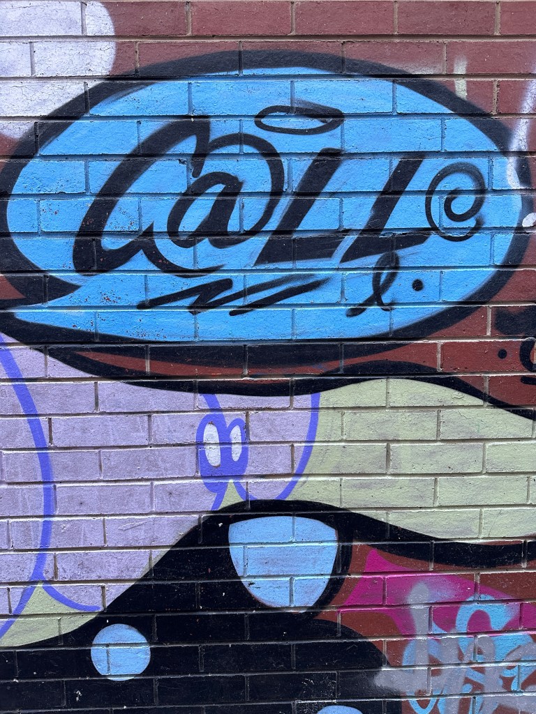 And Bish did obtain a ladder up which he clambered and did inscribe the word “DAVE” on the top of the wall above the graffiti and was pleased with his work