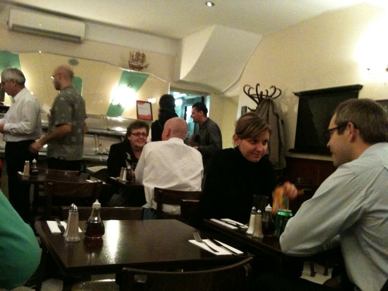 Dinner for 2 (F&C, mushy peas, BYO, no corkage: about £20.