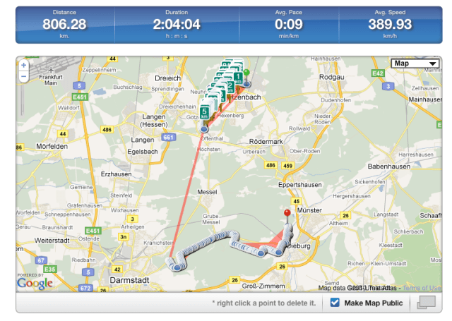 Which is how long it takes to run down the battery, shortly before which it COMPLETELY screws up everything and tells you that your average speed was close to 400km/hour…..