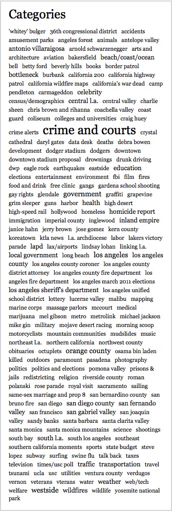The LA Times blog has a category cloud.
