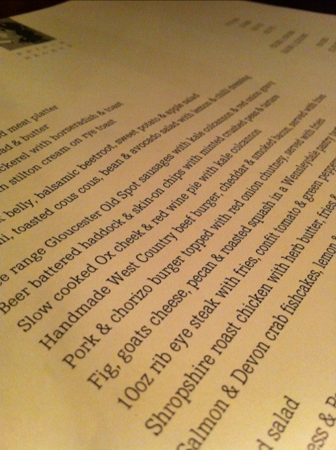 Pub menu in Marylebone Rd.