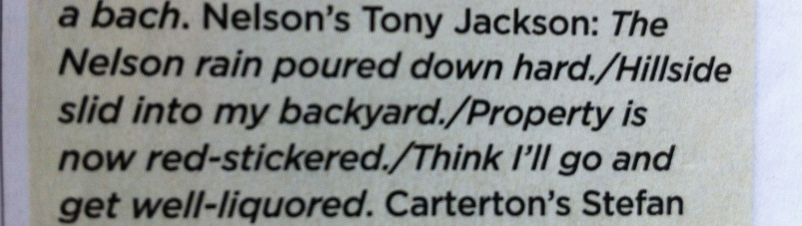 a) the hillside stopped at his backdoor, with a massive poplar resting gently against his roof.