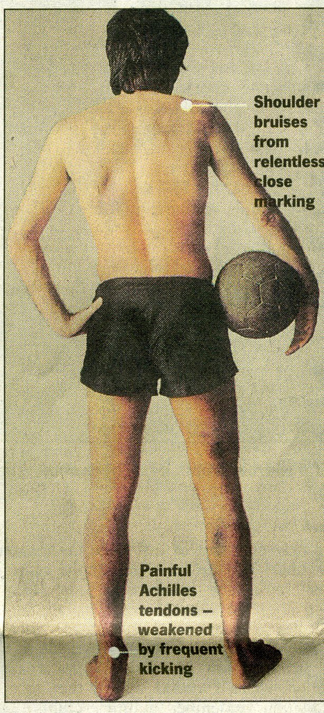 The “Observer” published these images taken immediately after a match in either 1969 or 1970 – I remember reading the article and it stayed with me – to show the physical punishment dealt out to players that a defender couldn’t stop by any other means.